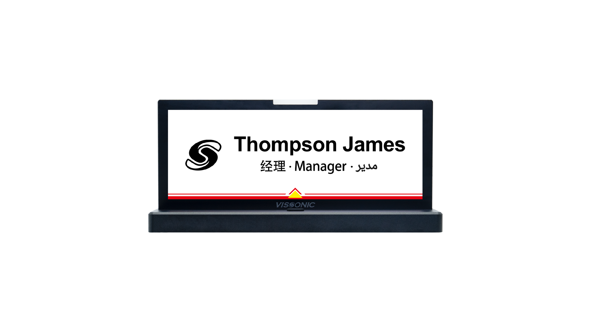 The VIS-NP10E-DC-P Dual-Sided E-ink Nameplate features a sleek, modern design that enhances conference professionalism and efficiency. Its 10.85-inch dual-sided display supports 1360×480 HD resolution, with a top dual-color LED indicating speaking status and a button for speech requests. Replacing traditional plastic, paper, or brass nameplates, with the advantages of high informatization, reusability, and convenience, making it ideal for modern conferences.